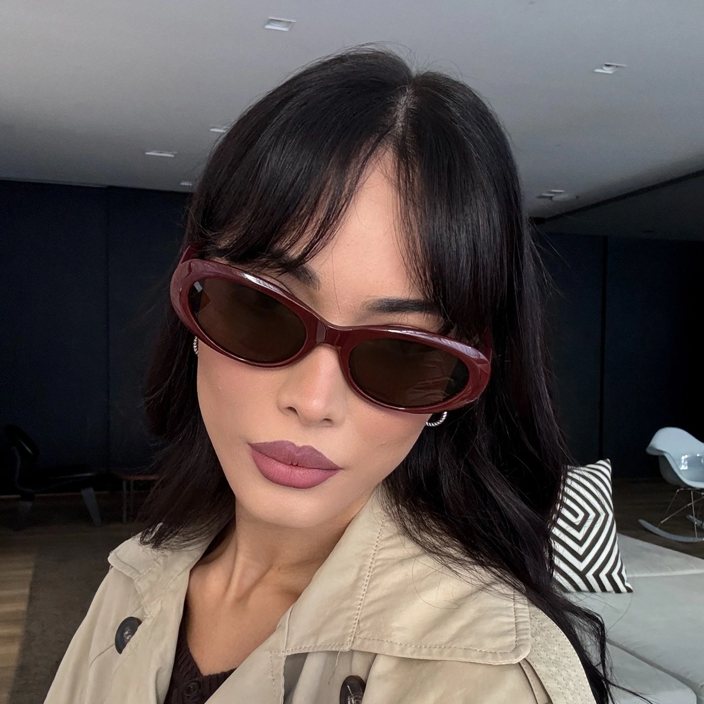 O modelo Emilia aposta em um visual compacto, curvilíneo e altamente estilizado. Com shape oval e armação preta intensa, ele remete à estética dos anos 90 — revivida por fashionistas e celebridades em produções modernas e nada óbvias.