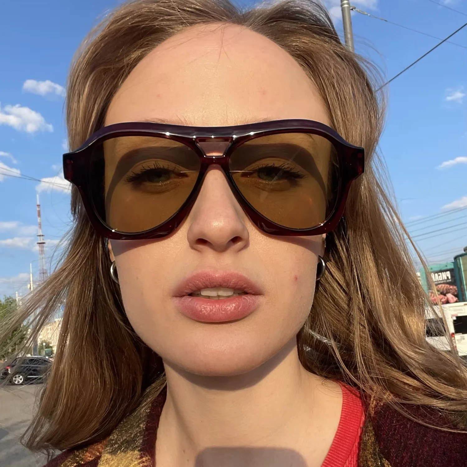 Armação aviador em marrom translúcido