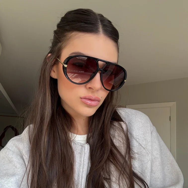 Com inspiração direta nas passarelas internacionais, o modelo Veneza traduz sofisticação e poder em um design ousado e imponente. Seu shape oversized com ponte triangular e hastes marcantes traz uma estética de luxo moderno que chama atenção sem esforço.